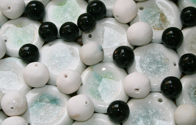 glazed porcelain with glass and obsidian